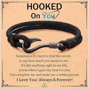 Fish Hook Bracelet Gifts for Men, Hooked on You Jewelry Gifts for Husband, Christmas Anniversary Valentines Birthday Gifts for Him