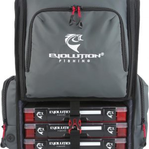 Evolution Fishing Largemouth 3.0 Tackle Backpack – Patent Pending Modular Dividers, Rod Holders, Heavy Duty Fishing Backpack, Includes Quiklatch Tackle Trays