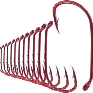 Baitholder Fishing Hooks 100 Pack – Double-Barbed Long Shank for Bluegill Bass Trout Walleye Black/Red, 8/0-#8