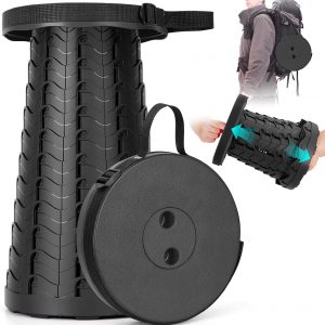 Collapsible Stool, Folding Chair – Upgraded Portable Chair with Load Capacity 400lbs, Portable Stool for Camping Fishing Hiking – Folding Tool with Carrying Straps,Gifts for Fisherman (Black)