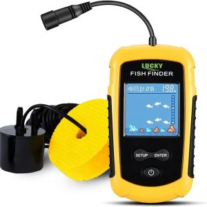 LUCKY Kayak Portable Fish Depth Finder Water Handheld Fish Finder Sonar Castable Kayak Boat Fishfinder Transducer Fishing LCD Display FFC1108