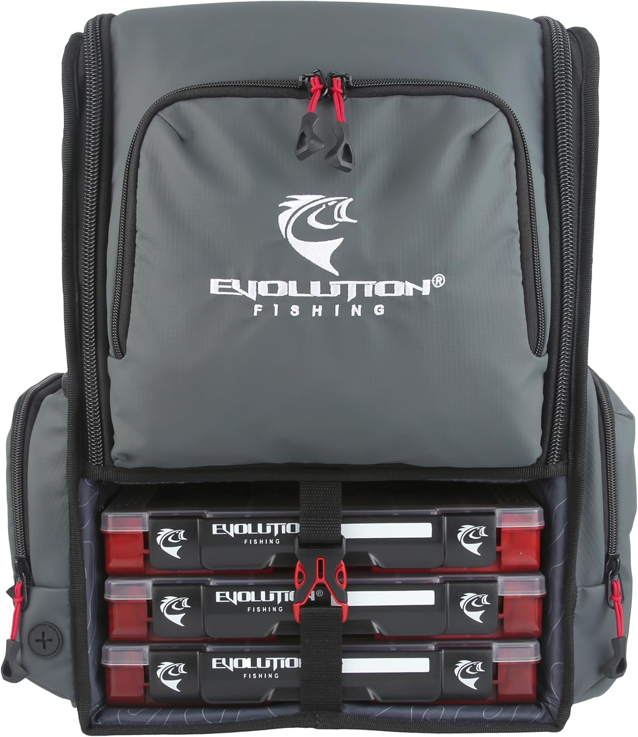 / Evolution Fishing Largemouth 3.0 Tackle Backpack – Patent Pending Modular Dividers, Rod Holders, Heavy Duty Fishing Backpack, Includes Quiklatch Tackle Trays