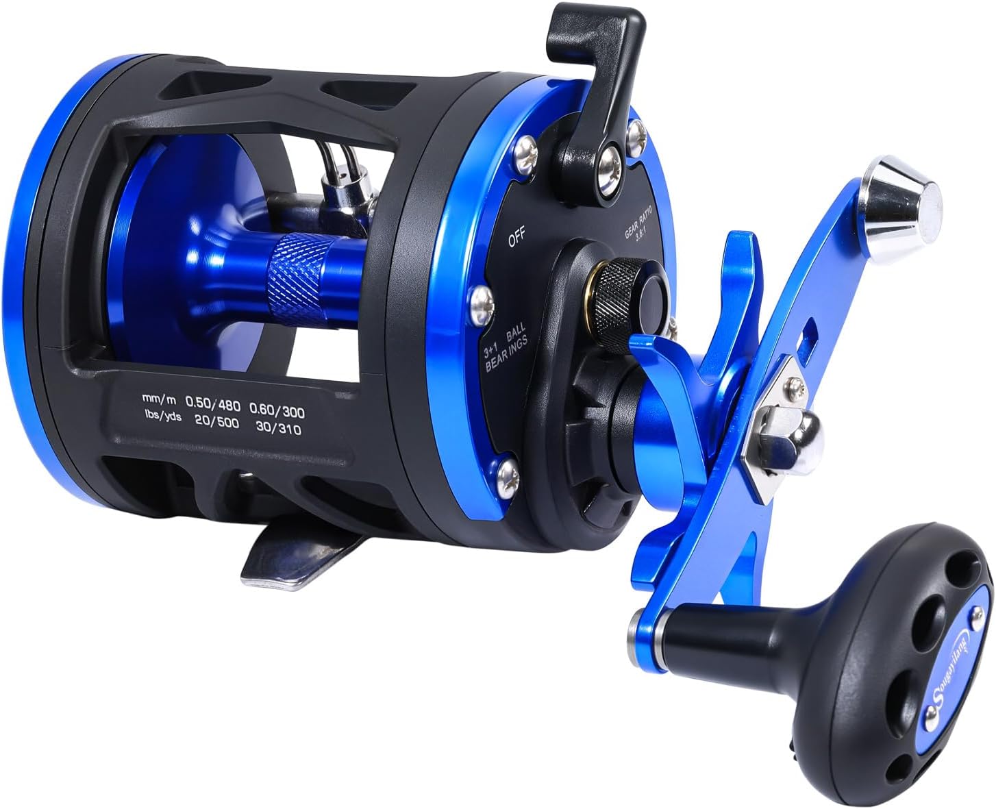 - Premium Lightweight & Durable Build: The Sougayilang Trolling Reel features an aircraft-grade aluminum frame combined with graphite side panels, offering exceptional strength without adding bulk. Its stainless steel handle and oval knobs ensure a comfortable grip, making it perfect for long trolling sessions.