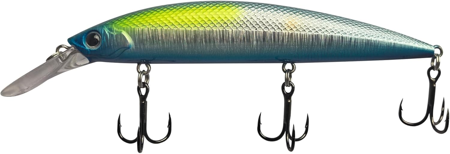 / Suspending Minnow Crankbait for Bass Fishing, Shallow Diving 2-4 ft Jerk Bait with Precise Weight & High Strength Treble Hooks, Topwater Swimbait Lure for Saltwater Freshwater, Amber Lustre